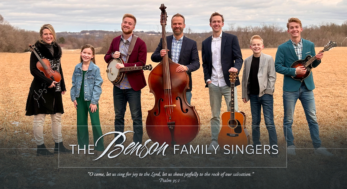 The Benson Family Singers are a family music group from Faribault, Minnesota. Peter and Rachelle, along with their four sons, David, Aaron, Luke, Paul, and daughter, Keziah, have a unique ministry consisting of barbershop, bluegrass, and gospel music. They specialize in tight, a cappella harmonies and also play a variety of instruments, including guitar, banjo, bass, violin, and mandolin. Together they have performed for many shows, festivals, fairs, churches, and private events throughout the country. The Bensons use their music, humor, and message to proclaim the gospel of Jesus Christ. Don’t miss this incredible family experience!
